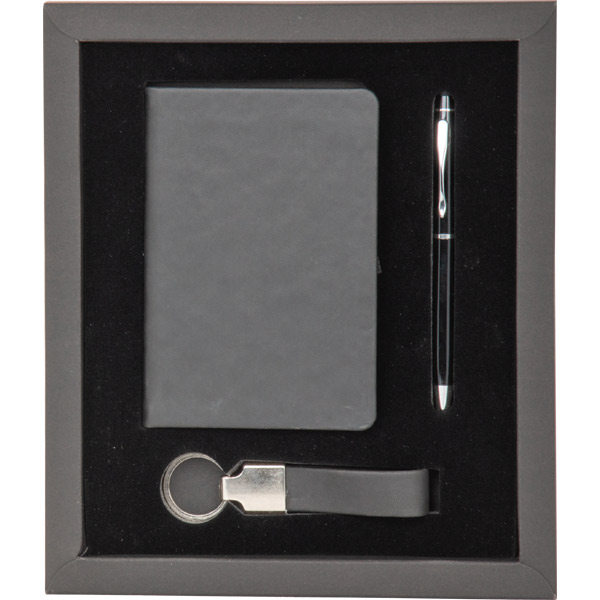 * Termo Deri Defter 9,5 x 14 cm (İstiklal) * Metal Kalem Tükenmez (0555-320) * Deri ve Metal Anahtarlık (AN-5090) * Özel Kutu